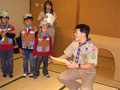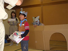Y.O副長の綿密な準備で、小道具(ねずみのお面)はすぐに完成。Y.O副長を舞台監督として、劇の練習を開始。他の副長がスカウトたちの練習を手厚くサポートし、通し稽古まで進めることができました。 やりたくないとぐずる子は一人もおらず、全員で熱心に劇をやろうという意気込みが伝わってきて、いい集会でした。