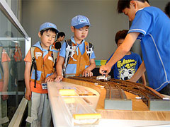 ●活動内容:6月1回目の隊集会は大宮の鉄道博物館見学です。カーブレールをうまく走る車輪の形を見つけたり、線路切替のところで台車を動かしたり、面白い実験がたくさんありました。