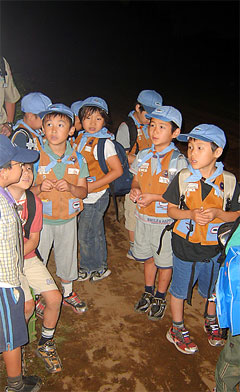 素早く集合して整列することと、その時リーダーに注目して「気をつけ」「休め」のサインに従うことは、ビーバー隊でも団体行動を安全に行うためには最低限必要なことですので、これからもしっかり指導を行います。