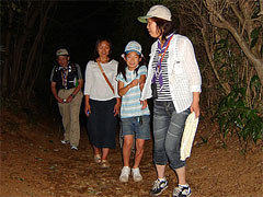 ▲「きもだめし案内人」から説明を受けるスカウトたち