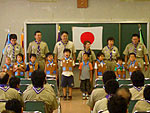 この日は午後から弥栄集会(上進式)のため、団舍で2年生とのお別れ会としてベッコウ飴を作って食べました。また、弥栄集会会場まで移動中に空き缶やゴミを拾い、弥栄集会で新しい仲間と副長を迎えました。 |